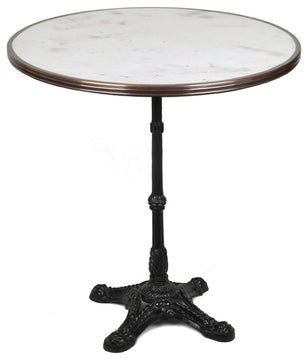 French Bistro Table 28", White Italian Carrara Marble, w/ Pedestal Base
