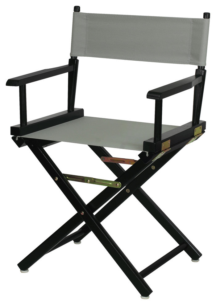 18" Director''s Chair Black Frame-Gray CanvasDiscover a variety of uses for this classic-style Director''s Chair. Constructed with 100% solid wood, this portable Directors Chair is built for lasting strength. Foldable design makes transportation and storage a breeze--meaning you can move it from room to room or transport it for special occasions with ease. An excellent solution for homes, schools, events, and businesses alike.Classic style fits permanent or temporary seating for any occasion. Foldable design for effortless transport and storage. Built-in armrests provide comfort and support. No assembly required, simply install the canvas and enjoy.Made with 100% Solid Wood for increased durability and longevity. Dimensions: 20" x 16" x 32"H, Seat-height approx. 18", Back cover size: 20" x 6", Seat cover size: 18" x 16". Item Dimensions - 21.75"W x 17"D x 33.75"HItem Weight - 7.75