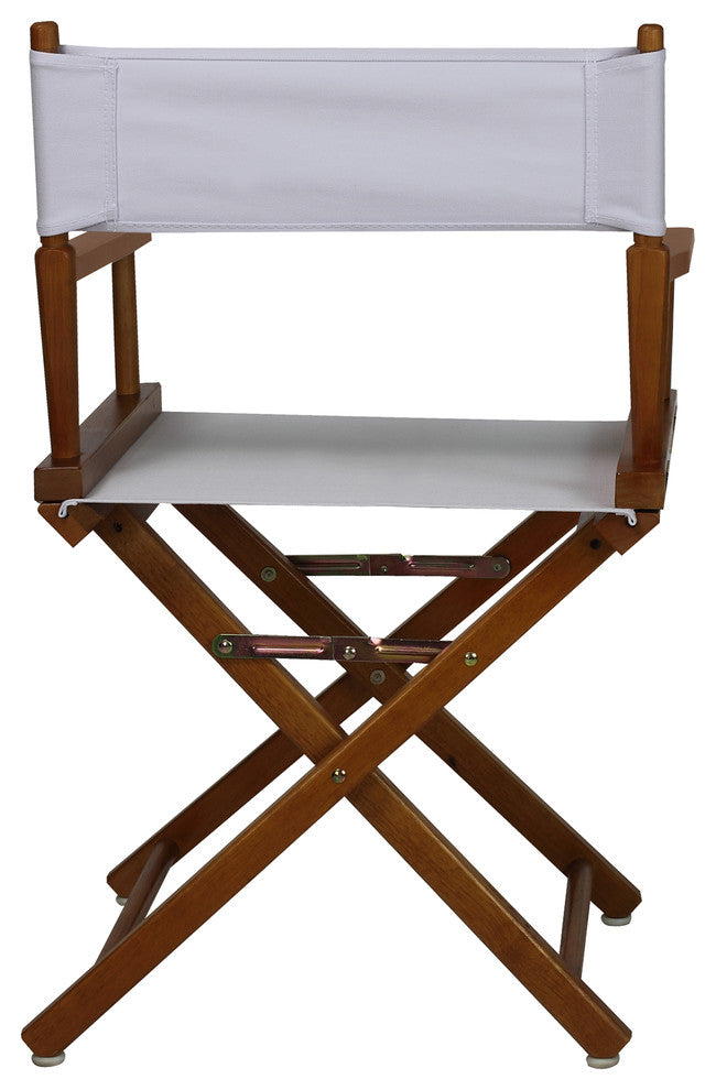 18" Director''s Chair Honey Oak Frame-White CanvasDiscover a variety of uses for this classic-style Director''s Chair. Constructed with 100% solid wood, this portable Directors Chair is built for lasting strength. Foldable design makes transportation and storage a breeze--meaning you can move it from room to room or transport it for special occasions with ease. An excellent solution for homes, schools, events, and businesses alike.Classic style fits permanent or temporary seating for any occasion. Foldable design for effortless transport and storage. Built-in armrests provide comfort and support. No assembly required, simply install the canvas and enjoy.Made with 100% Solid Wood for increased durability and longevity. Dimensions: 20" x 16" x 32"H, Seat-height approx. 18", Back cover size: 20" x 6", Seat cover size: 18" x 16". Item Dimensions - 21.75"W x 17"D x 33.75"HItem Weight - 7.75