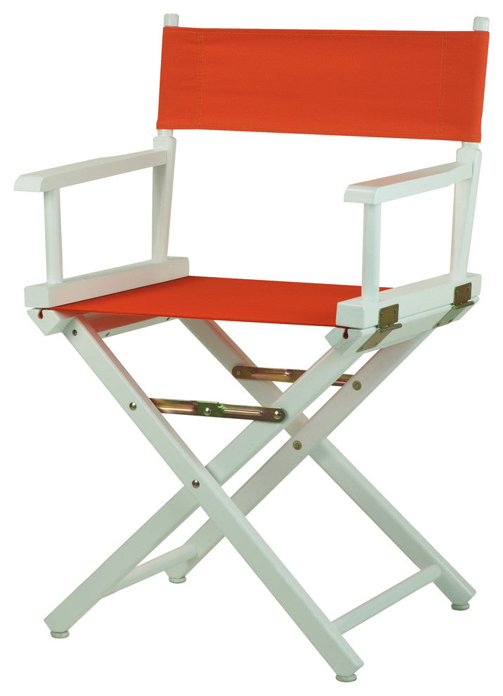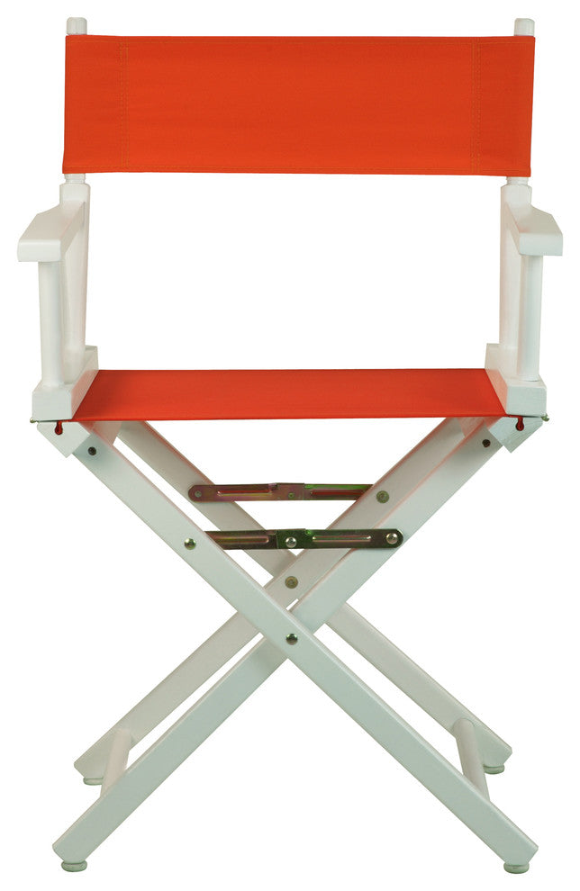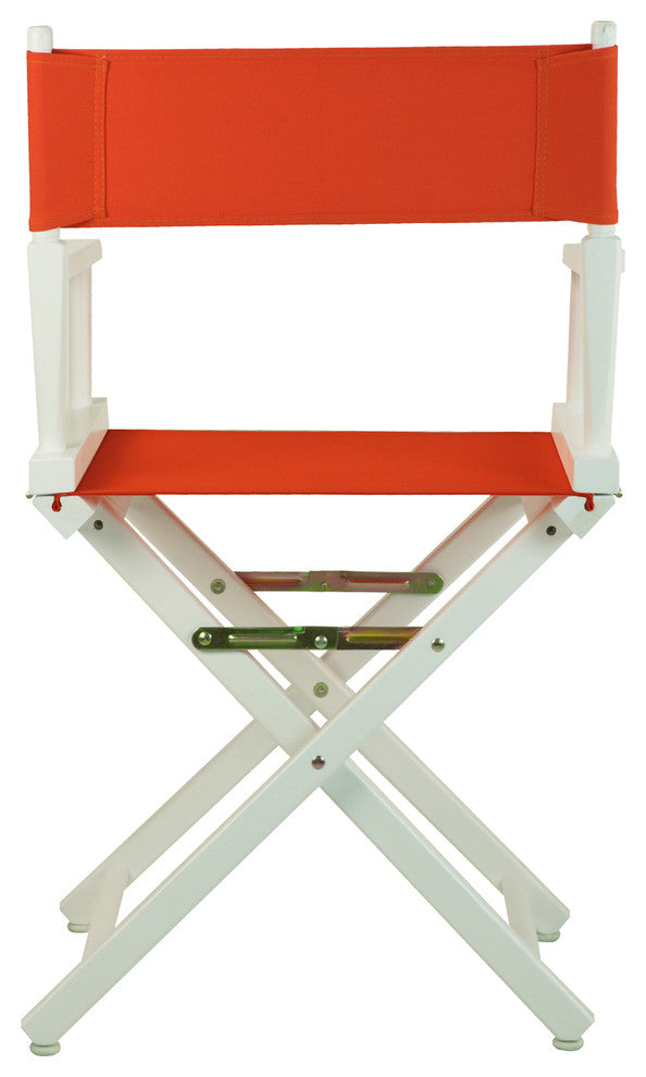 18" Director''s Chair White Frame-Orange CanvasDiscover a variety of uses for this classic-style Director''s Chair. Constructed with 100% solid wood, this portable Directors Chair is built for lasting strength. Foldable design makes transportation and storage a breeze--meaning you can move it from room to room or transport it for special occasions with ease. An excellent solution for homes, schools, events, and businesses alike.Classic style fits permanent or temporary seating for any occasion. Foldable design for effortless transport and storage. Built-in armrests provide comfort and support. No assembly required, simply install the canvas and enjoy.Made with 100% Solid Wood for increased durability and longevity. Dimensions: 20" x 16" x 32"H, Seat-height approx. 18", Back cover size: 20" x 6", Seat cover size: 18" x 16". Item Dimensions - 21.75"W x 17"D x 33.75"HItem Weight - 7.75
