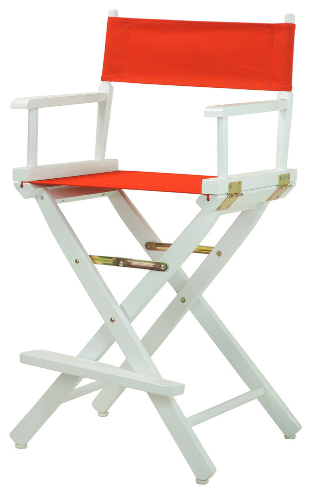 24" Director''s Chair White Frame-Red CanvasDiscover a variety of uses for this classic-style Director''s Chair. Constructed with 100% solid wood, this portable Directors Chair is built for lasting strength. Remove the footrest and the foldable design makes transportation a breeze--meaning you can move it from room to room or transport it for special occasions with ease. An excellent solution for homes, schools, events, and businesses alike.Classic style fits permanent or temporary seating for any occasion. Simply remove the footrest and foldable design provides effortless transport and storageBuilt-in armrests and footrests provide comfort and support. Light and easy assembly, simply insert the canvas, install the footrest, and enjoy.Made with 100% Solid Wood for increased durability and longevity. Dimensions: 23"W x 19"D x 39. 5"H, Seat-height approx. 24", Back cover size: 20" x 6", Seat cover size: 18" x 16". Item Dimensions - 23"W x 19"D x 39.5"HItem Weight - 10.5