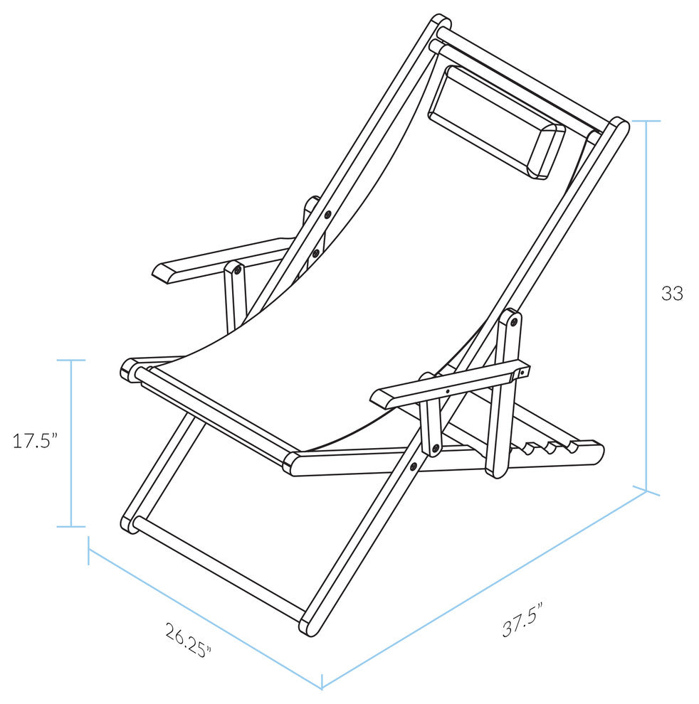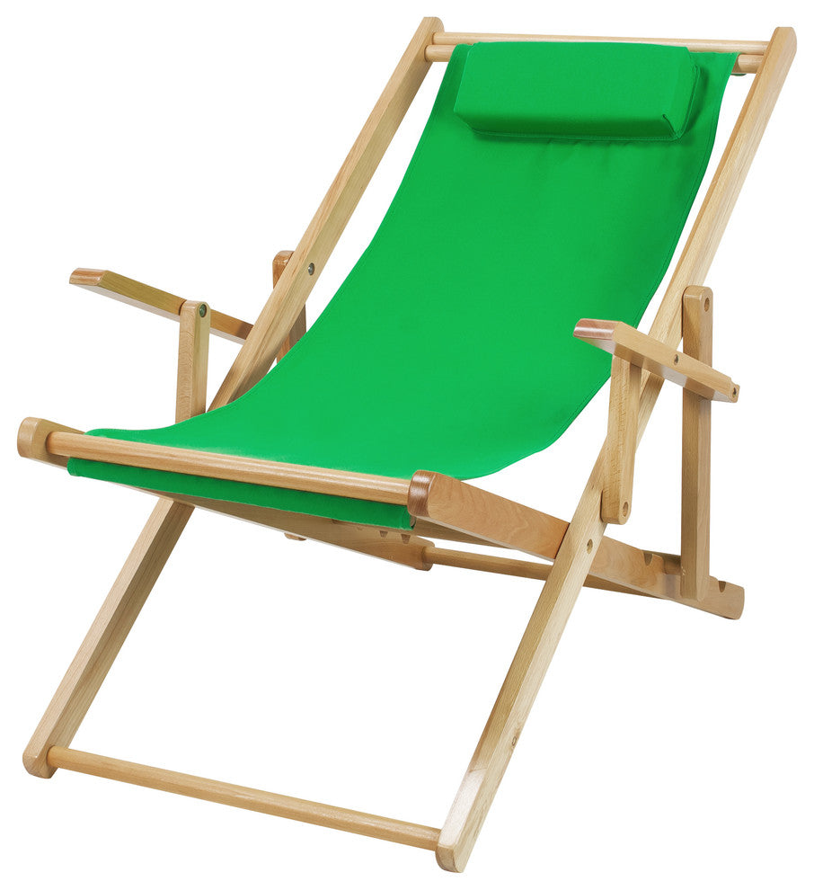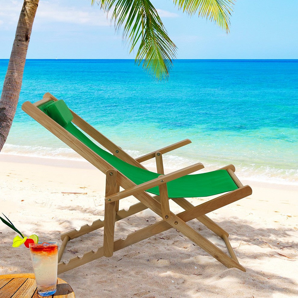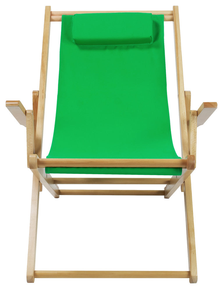 Sling Chair Natural Frame-Green CanvasStylish and calming, this solid wood Sling Chair with arms and multi-position recline position is the perfect addition to increase relaxation in any area of your home. Foldable design makes transportation and storage a breeze. Canvas style seating enables natural comfort that conforms to you. Adjust your reclining setting easily using the included 5-stage system. Ideal companion for great views and peaceful times.Padded headrest provides increased support and comfort. 5-stage adjustable reclining design increases versatility. Foldable design allows for effortless transport and storage. Heavy-duty canvas material for strength and longevity. Armrests for additional support. Light and easy assembly. Item Dimensions - 26.25"W x 37.5"D x 33"HItem Weight - 14