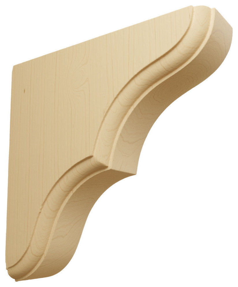 1 3/4"W x 5 1/2"D x 5 1/2"H Stratford Wood Bracket, Alder. Authentic wood brackets are the perfect choice for supporting countertops and shelving. With the proper installation, these wood brackets can support up to 250lbs, which gives you the flexibility to use a decorative bracket for support. Available in a variety of species, these brackets ship to you fully sanded and ready for your paint or stain.