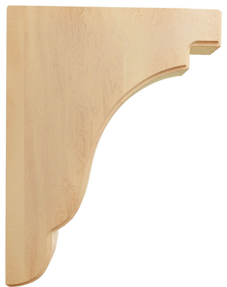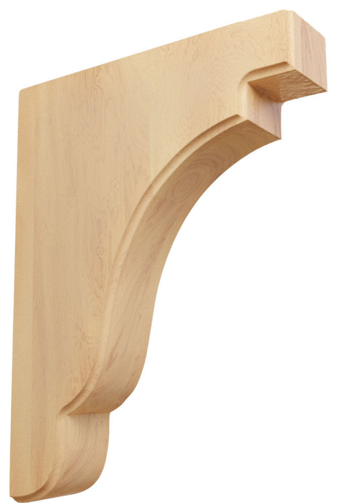 1 3/4"W x 7 1/4"D x 9 1/2"H Bedford Wood Bracket, Red Oak. Authentic wood brackets are the perfect choice for supporting countertops and shelving. With the proper installation, these wood brackets can support up to 250lbs, which gives you the flexibility to use a decorative bracket for support. Available in a variety of species, these brackets ship to you fully sanded and ready for your paint or stain.