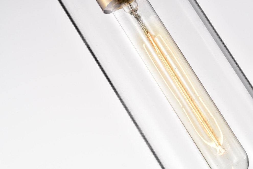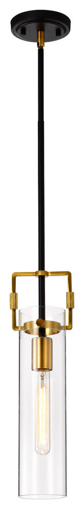 1-Light Black and Antique Gold Mini Pendant With Clear Cylindrical Glass ShadeFe