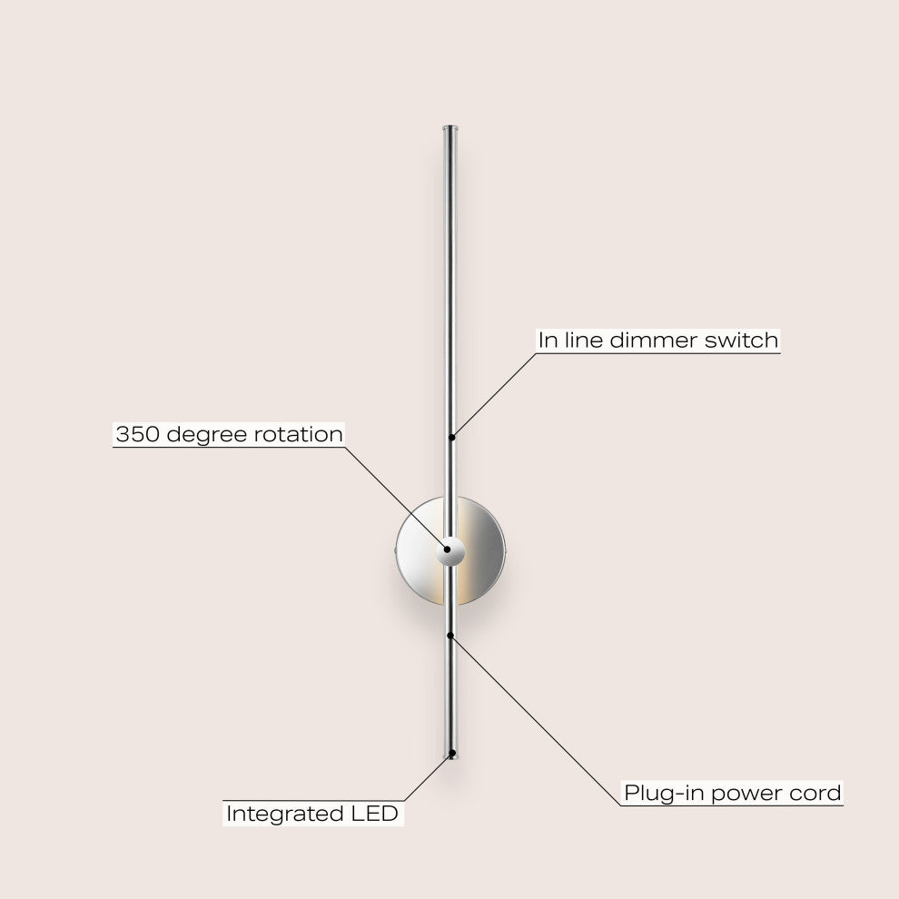 Our barely-there modern wall sconce features energy-saving, integrated LEDs for bright, clear light. Plug-in design can be installed horizontally or vertically. Let our minimalist wall light add contemporary flair to an entry, living room, dining room, or bedroom.