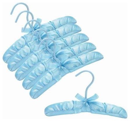 10" Baby Satin Padded Hangers, Blue, Set of 6