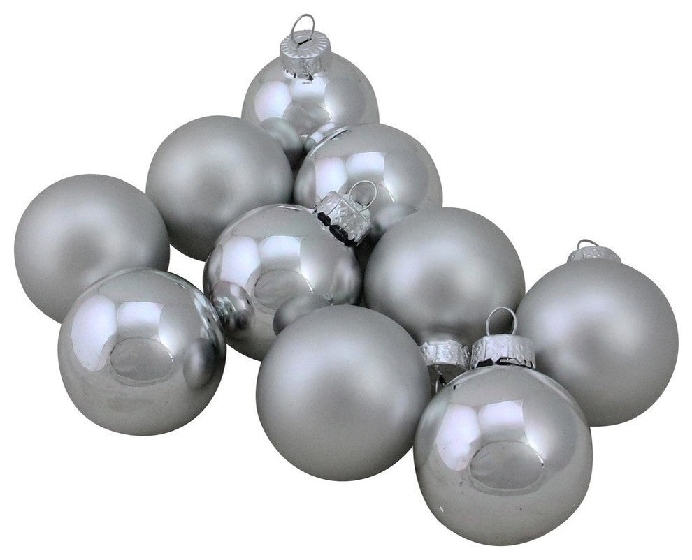 10-Piece Shiny and Matte Glass Ball Christmas Ornament Set, Silver