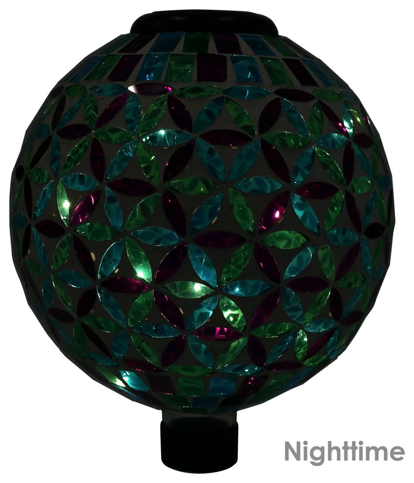 10" Sunnydaze Cool Blooms Outdoor Glass Mosaic Gazing Globe With Solar Light
