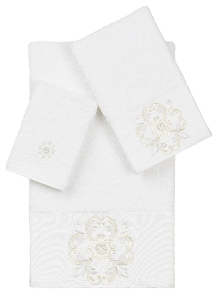 100% Turkish Cotton Alyssa 3-Piece Embellished Towel Set, White
