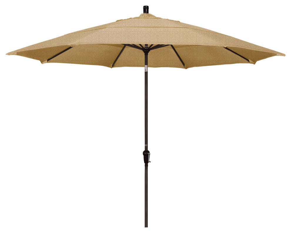 11' Bronze Auto-Tilt Crank Lift Aluminum Umbrella, Sunbrella, Linen Sesame