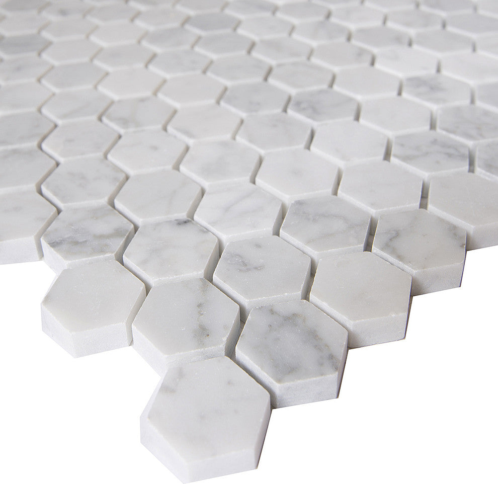 11.5"x11"Carrara White Marble Mosaic Tile, Hexagon, Honed, Set of 5