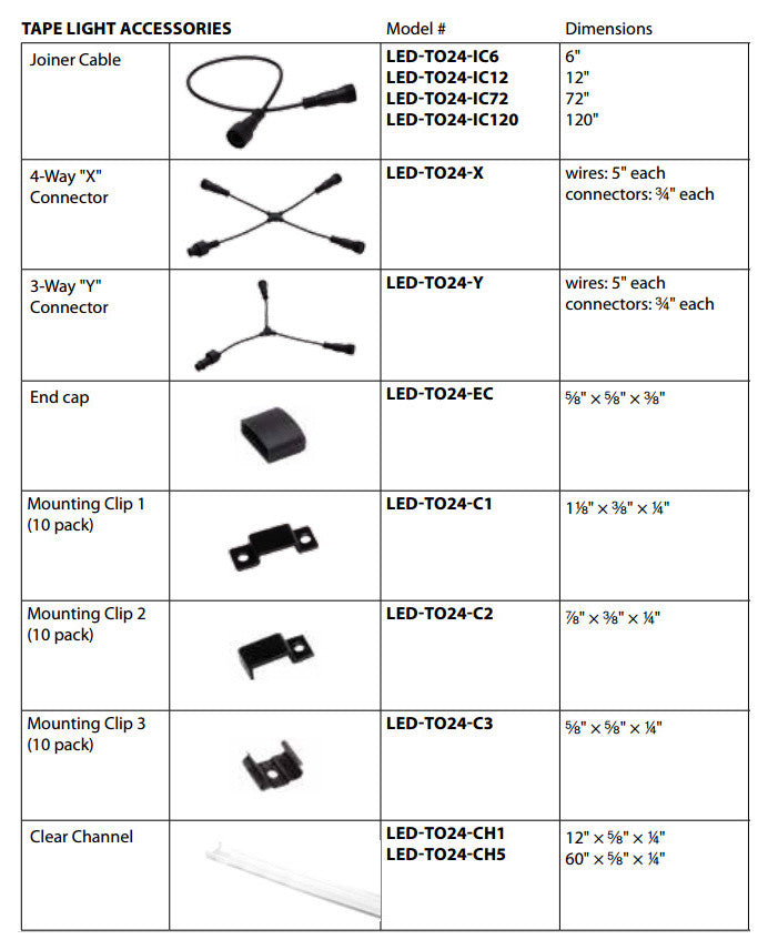 Connectors and accessories for WAC Lighting InvisiLED 24V PRO Outdoor Tape Light system.