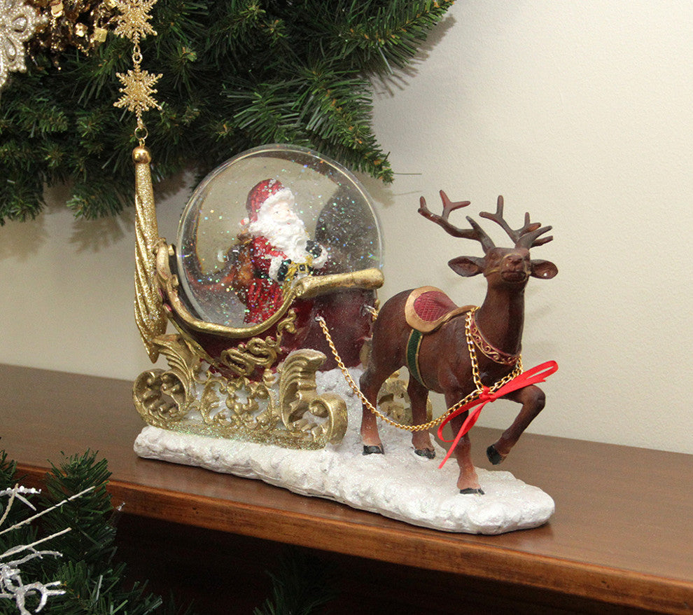 12" Santa Claus Sleigh and Reindeer Snow Dome Christmas Table Top Figure
