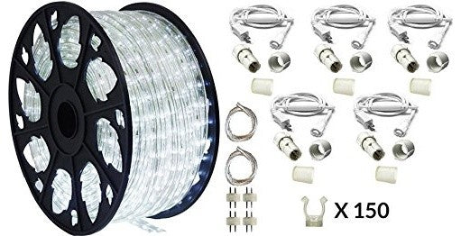 120V Dimmable LED Cool White Rope Light 150' Kit, Deluxe