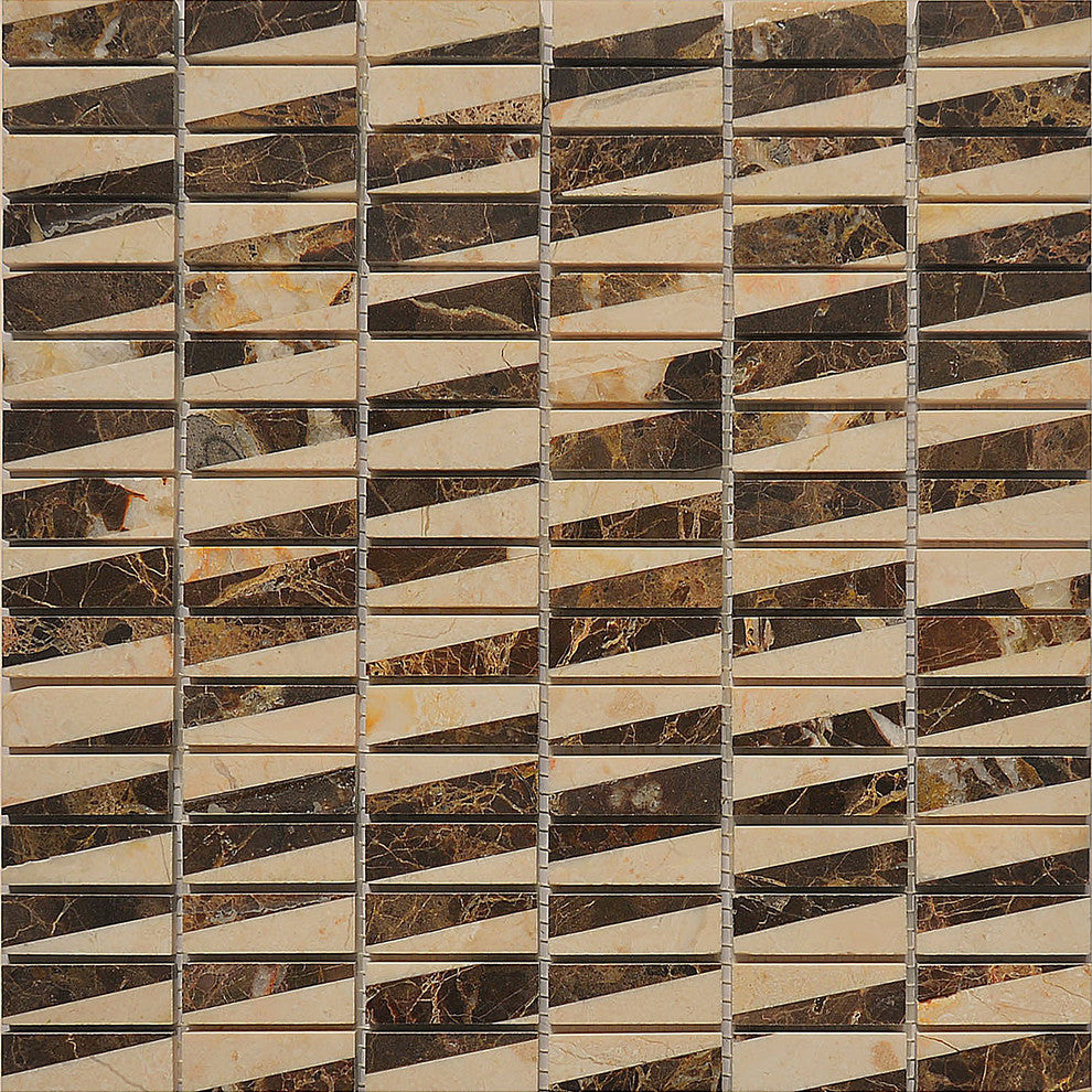 Specifications:General Name: Marble Mosaic TileCollection: BambooName: Emperador DarkSKU: MM 3104Type: Mosaic TileSize: 12"x12"Chip Size: 5/8"x2" BrickFinish: PolishedApplication: Wall and Floor