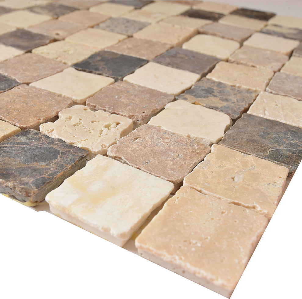 12"x12" Marble Mosaic Tile, Rabat Collection, Plaza, Square, Tumbled, Set of 5