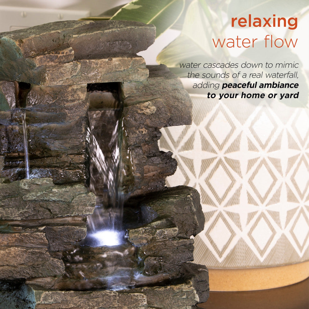 13" Tall Indoor 4-Tier Cascading Tabletop Fountain with LED Lights, Gray