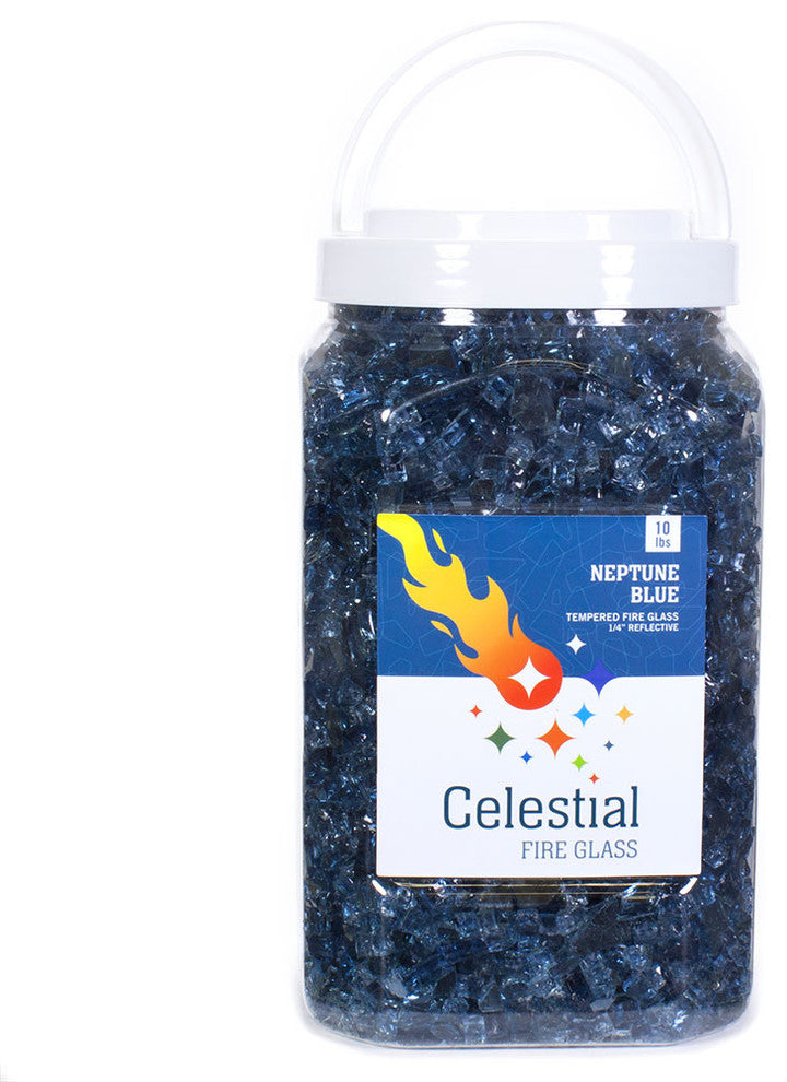 1/4" Reflective Tempered Fire Glass, Neptune Blue, 10 Pound Jar
