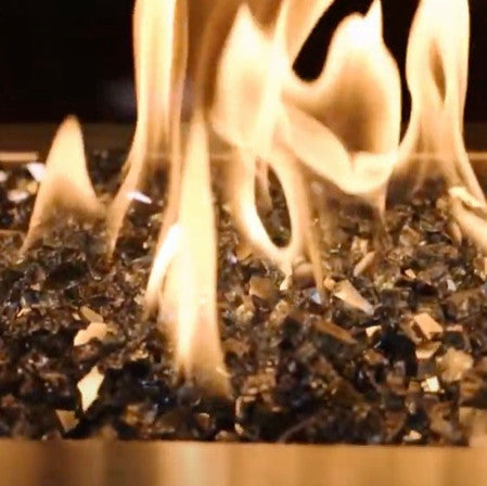 Tempered glass is a popular type of fire glass due to the unique nature of the flat surfaces the glass provides. These flat surfaces reflect and scatter light adding a glamourous look to your fire pit or fireplace. Choose the reflective tempered fire glass for the highest amount of sparkles. Our tempered fire glass is specifically designed for the high temperatures of fire pits and fireplaces.