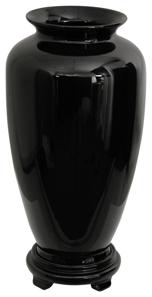 A large "Tung Chi" shaped vase finished in a high-luster monochrome black. Perfect for contemporary interior designs, displayed alone or in matched pairs. Place on a stand or shelving unit on its own, or filled with dry flowering branches of bamboo.Rich Black Glaze: A rich, lustrous black finish adds a touch of mystery and elegance to your space. Timeless and versatile, it can create a bold contrast, add depth and drama, and transform your decor with a touch of modern refinement.Classic Oriental Vase: This exquisite Chinese vase showcases a traditional and authentic style, perfect for adding an elegant touch to your home decor. A design that has never gone out of style, equally suited for vintage and contemporary decor.Traditional Craftsmanship: This was made by hand in a small workshop by a traditional artisan employing centuries of knowledge and cultural heritage. Each piece is a unique work of art and may vary slightly in exact design and detail.Modern High-Temperature Firing: This exceptional ceramic boasts a vitreous porcelain finish achieved through firing in a state-of-the-art high-temperature kiln. Its strength and durability ensure a top-quality, reliable product for all your needs.Classic Design for Today''s World: By supporting traditional artisans in a changing world you help keep their crafts alive and available. These vanishing arts are precious and make a beautiful gift for a birthday, anniversary, housewarming, or holiday.