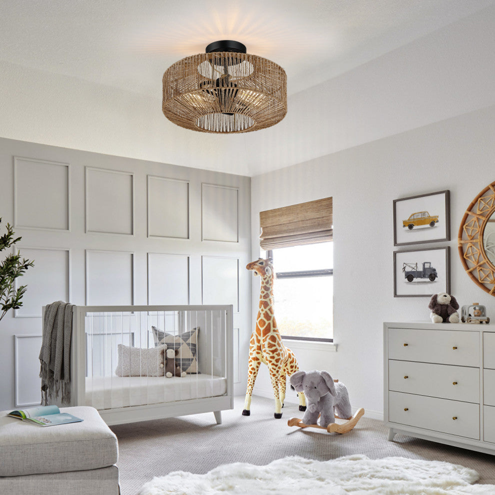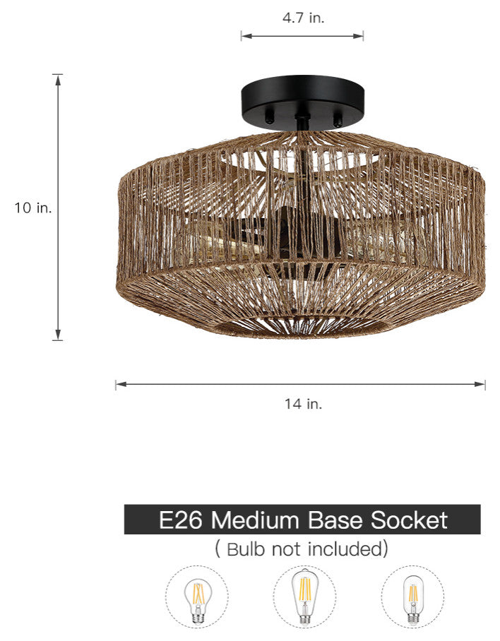 Coastal-inspired semi flush mount ceiling light fixture is crafted of natural rattan/hemp rope cage shade and matte black canopy, it''s an unique blend of eclectic nautical and bohemian style. Filtering the light from within, each piece creates a play of light and shadow in a room, adding an inviting ambience. This collection can work with a variety of boho decors and even work in homes with coastal or farmhouse styling, which is an ideal selection for hallway, entryway, stairway, door way or a foyer to bring warmth to a living room or bedroom.
