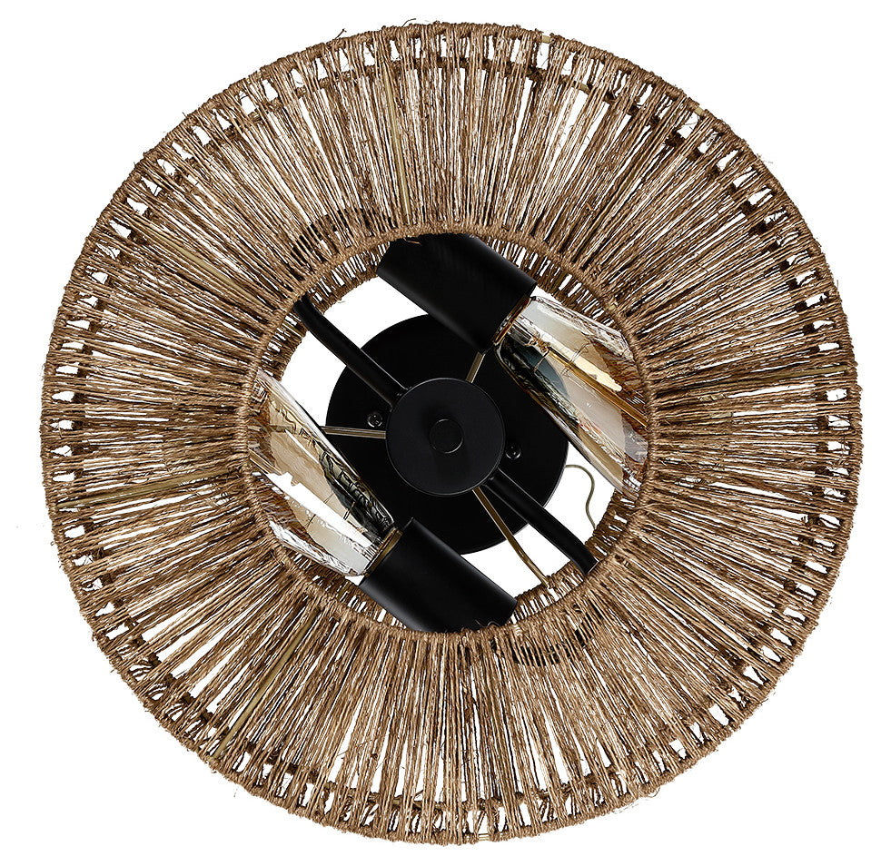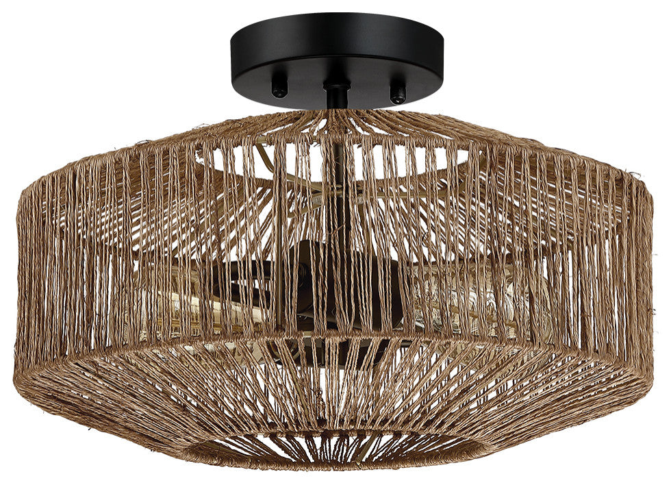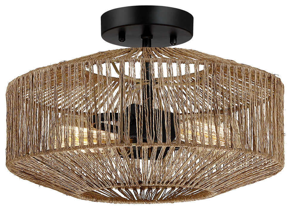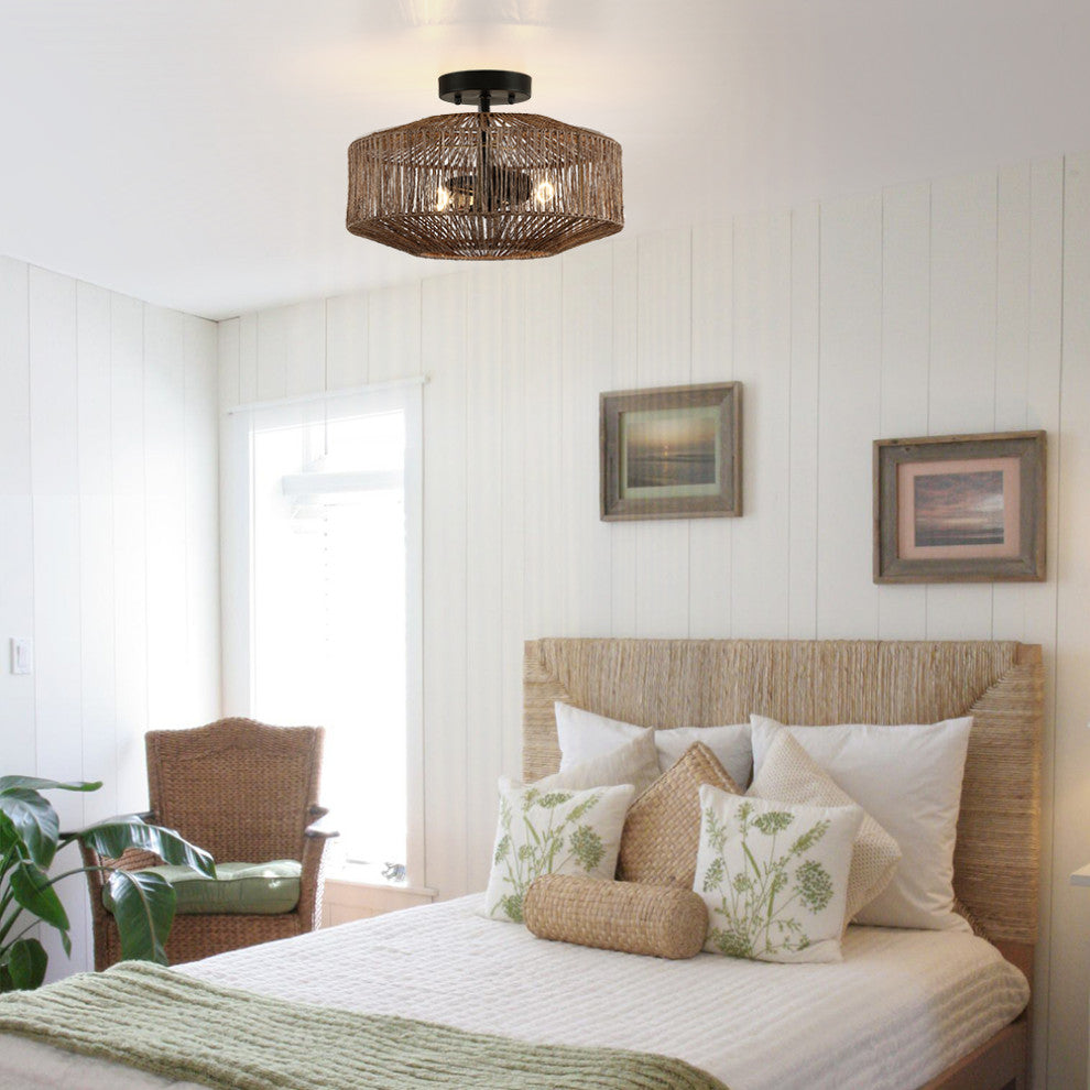 14" W 2-Light Bohemian Jute Rope Semi-Flush Mount