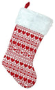 15" Heart and Snowflake Knit Christmas Stocking With White Cuff
