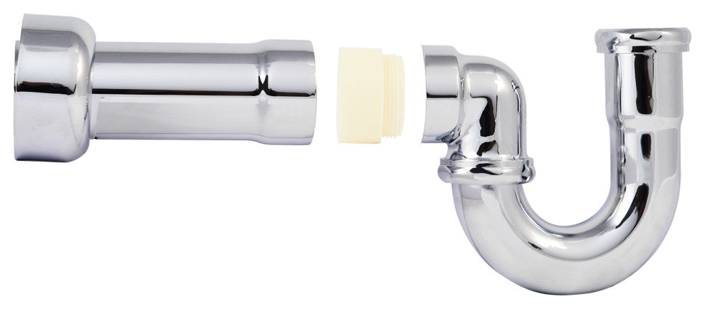 This LA/New England style 1-1/2 in. x 1-1/2 in. or 1-1/4 in. p-trap, designed to beautify modern Schedule 40 or ABS or PVC DWV systems, using a special, plated brass cover tube and high box flange. For use with ABS or PVC drain, waste and vent. 1-1/2 in. x 1-1/2 in. J-bend. 6 in. cover tube, D4094 high box flange. Schedule 40 1-1/2 in. PVC male adapter included.