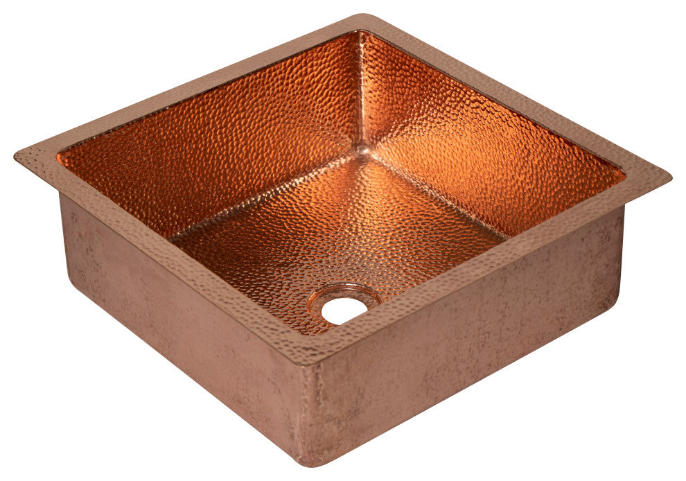 15" Square Hammered Copper Bathroom Sink, 18 Gauge