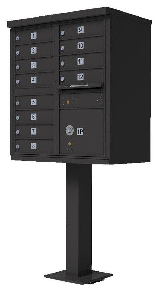 1570 12 Door Cluster Box Unit (CBU), Bronze12 door cluster box unitFor decorative stucco Tall CBU mailbox centersUSPS approvedProduct Dimension(WxDxH): 31"x17"x62"Color: Bronze