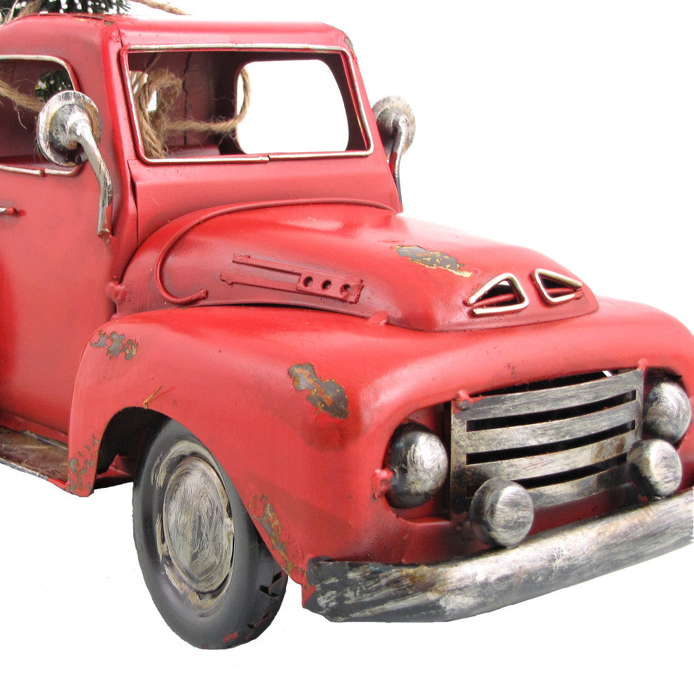 We took your suggestions and designed new small Christmas trucks, but this time they include realistic-looking brush trees instead of metal. Each is made of high quality iron with a distressed, hand painted finish. The tree is easily removed in the back, allowing display space for candy, ornaments, business cards, etc.Indoor/OutdoorPowder coatedDistressed finishAntique appearanceRemovable Christmas treeRotating tiresDimensions: 16.22" Lx6" Wx6.5" H