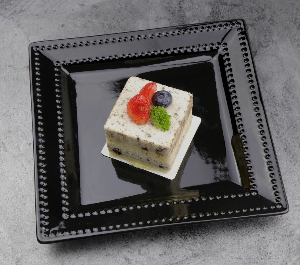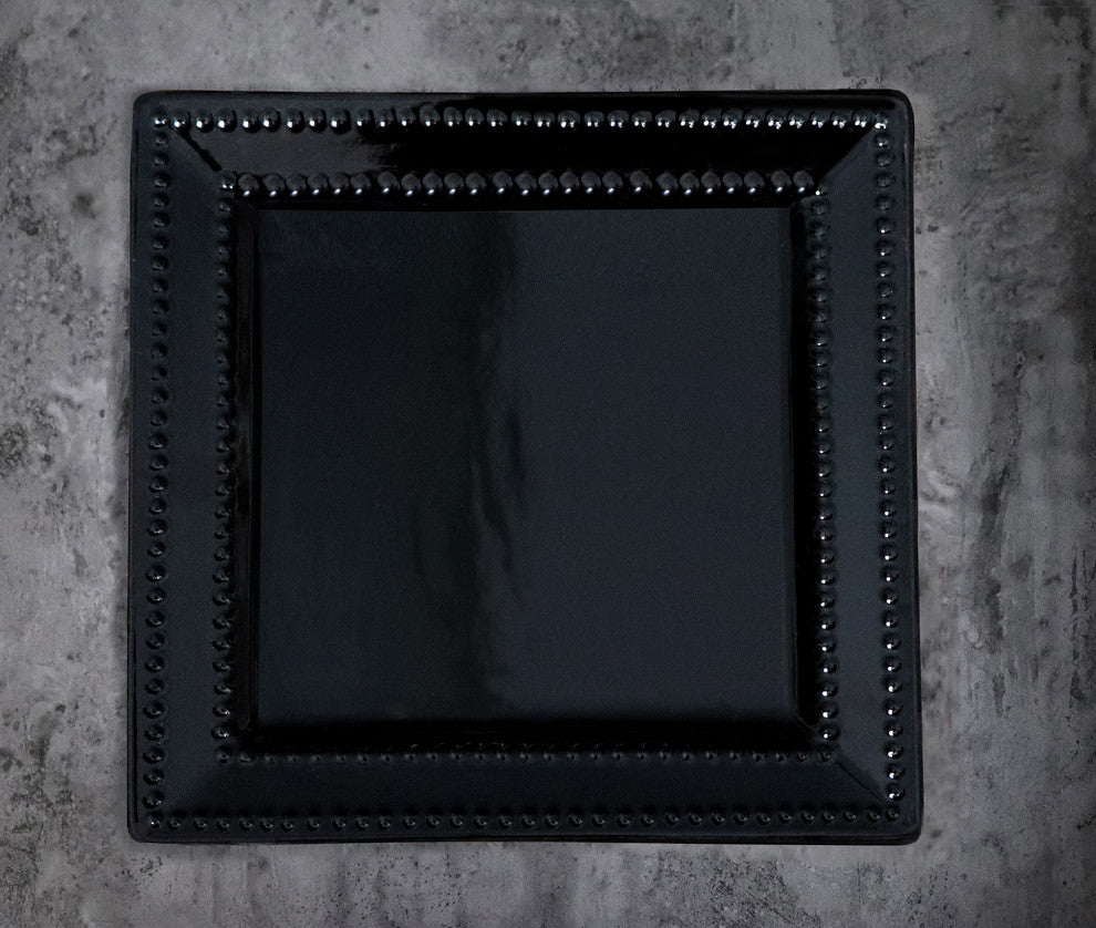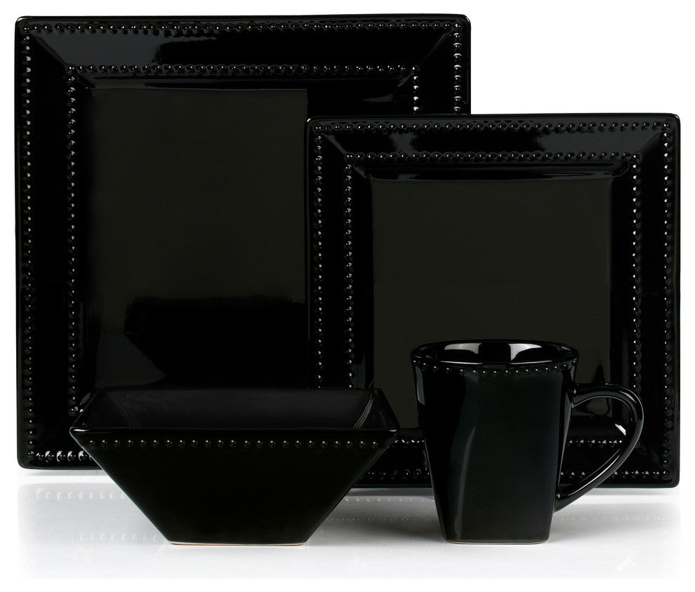 16 Piece Square Beaded Stoneware Dinnerware set by Lorren Home Trends, Black