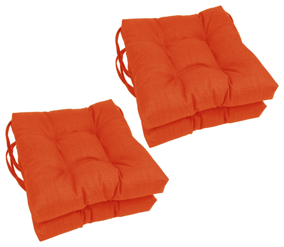 16" Solid Outdoor Square Tufted Chair Cushions, Set of 4, Tangerine Dream