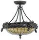 Visually impressive as branches of an Oak tree, this art glass shade delights with multi toned Beige art glass and a Bark Brown granite textured glass crown sprouting Oak Leaves and Acorn steel hardware featured in a Timeless Bronze finish. The hardware was custom crafted by Meyda artisans at the foothills of the Adirondack Mountains, and the shade was created using the famous copper foil construction method. This fixtures available in custom sizes, styles, colors and dimmable energy efficient lamping. The fixture is uL and cUL listed for dry and damp locations.