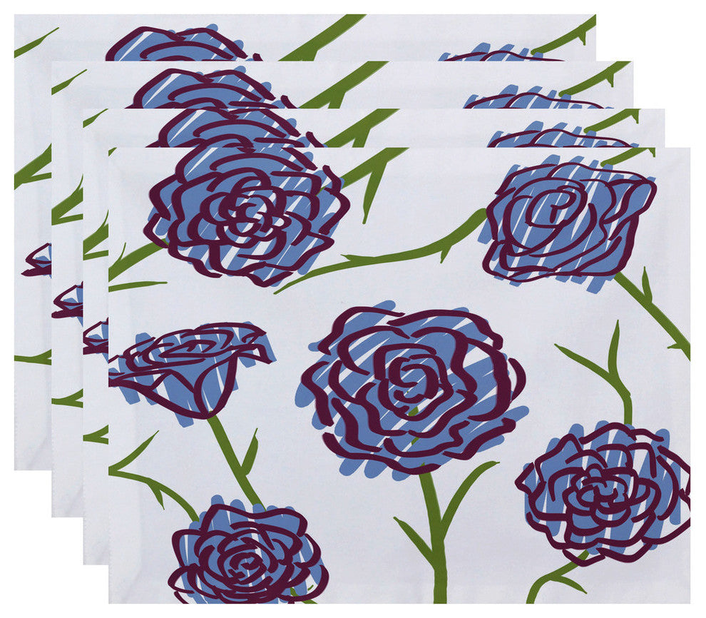 18"x14" Spring Floral 1, Floral Print Placemat, Blue, Set of 4