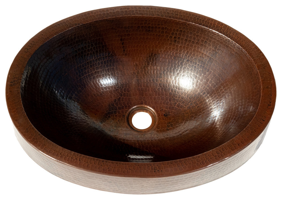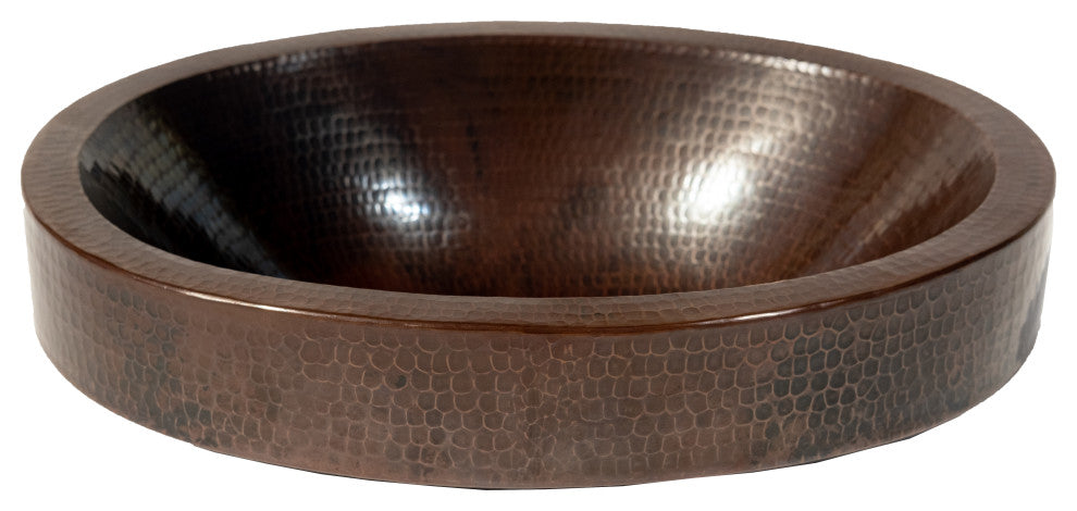 Handmade 19" Oval Copper Sink with ApronElevate your space with this exquisite handmade 19-inch oval copper sink, featuring an apron for added elegance and visual appeal. Combining artisanal craftsmanship with practical design, this sink offers a perfect balance of style and functionality.Features:Dimensions: 19" x 14" x 6" with a 3-inch apron, providing a spacious and deep basin while adding a unique design element to your countertop.Material: 100% recycle copper, Made from high-quality, 16-gauge copper, known for its durability.Finish: The sink boasts a hand-hammered finish that enhances the warm, rich tones of copper, showcasing the artisan''s skill. Over time, the copper will develop a beautiful patina, adding character and depth.Design: The elegant oval shape, complemented by the apron, adds a refined touch that fits seamlessly into both traditional and modern settings. The apron provides a stylish accent, offering a unique visual contrast to standard sink designs.Installation: Suitable for under-mount or drop-in installation, offering versatility to suit a variety of design preferences.Care: Naturally resistant to bacteria and easy to maintain, the copper requires minimal upkeep, ensuring long-lasting beauty and functionality.This handmade 19" oval copper sink with apron is ideal for those who appreciate artisanal craftsmanship and the timeless beauty of copper, making it a striking focal point in any bathroom or kitchen.