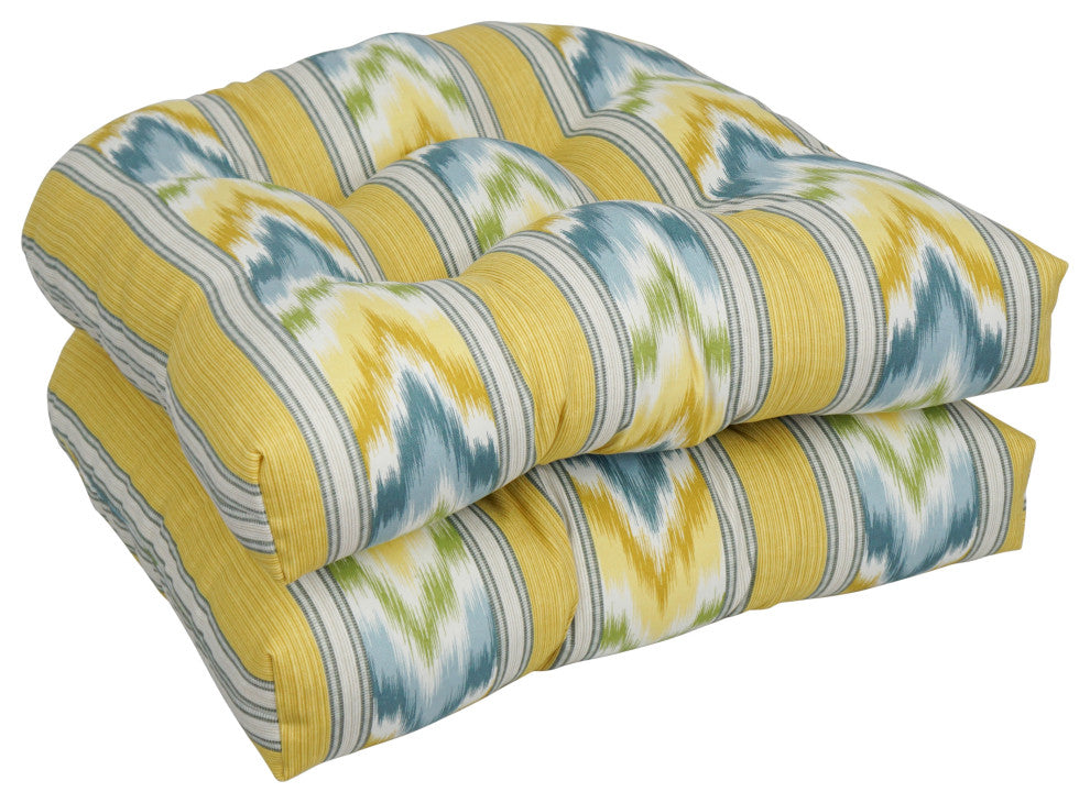 Add a splash of color and style to your home furnishings with these chair cushions. These cushions feature a classic tufted cushion design and are available in a wide variety of striking patterns of UV and weather-resistant spun polyester outdoor fabric.