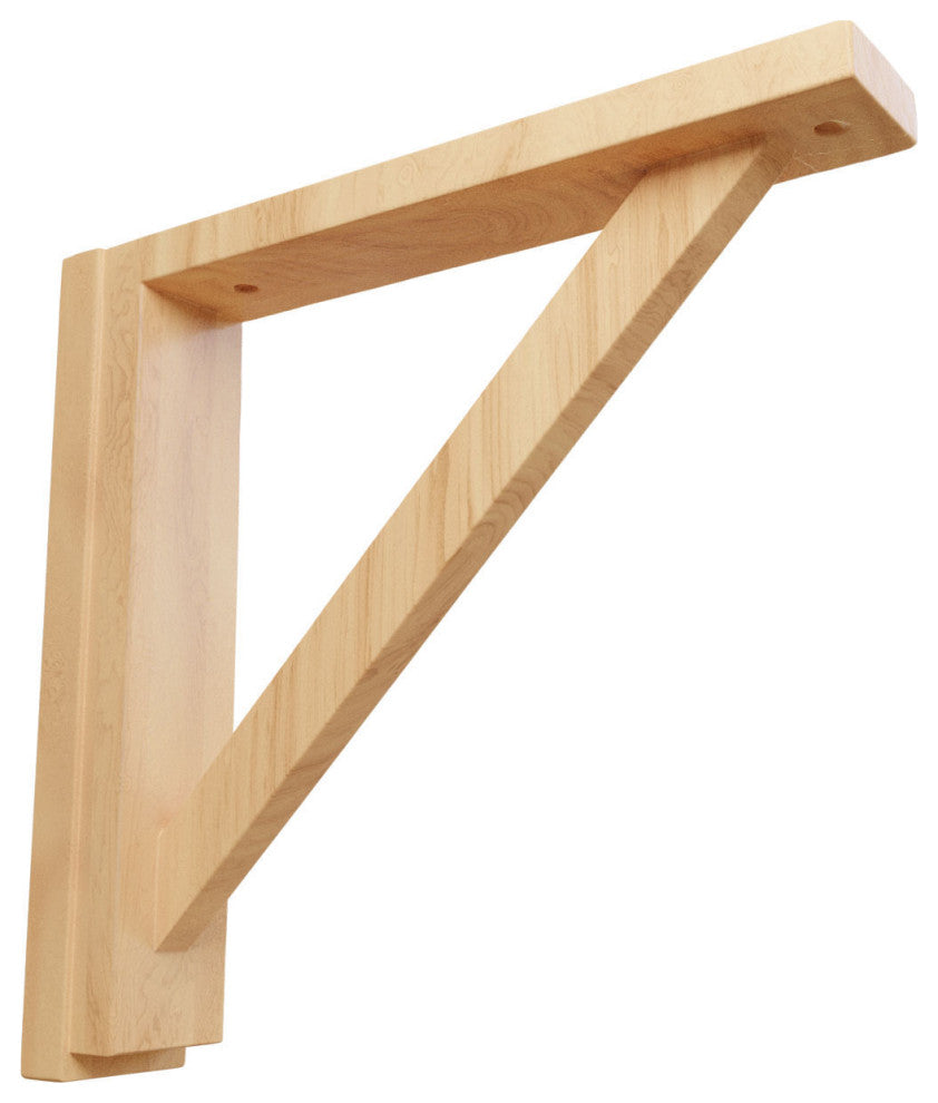 2 1/2"W x 12 3/4"D x 12 1/4"H Traditional Shelf Bracket, Red Oak. Authentic wood brackets are the perfect choice for supporting countertops and shelving. With the proper installation, these wood brackets can support up to 250lbs, which gives you the flexibility to use a decorative bracket for support. Available in a variety of species, these brackets ship to you fully sanded and ready for your paint or stain.