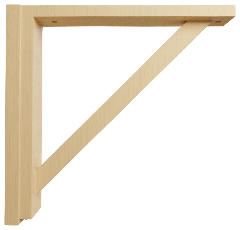 2 1/2"W x 14 3/4"D x 14 1/4"H Traditional Shelf Bracket, Alder. Authentic wood brackets are the perfect choice for supporting countertops and shelving. With the proper installation, these wood brackets can support up to 250lbs, which gives you the flexibility to use a decorative bracket for support. Available in a variety of species, these brackets ship to you fully sanded and ready for your paint or stain.