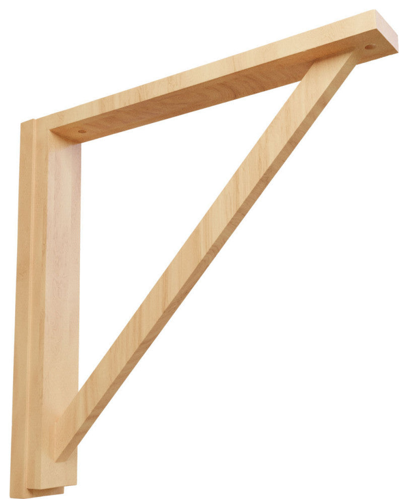 2 1/2"W x 17 3/4"D x 17 1/4"H Traditional Shelf Bracket, Red Oak. Authentic wood brackets are the perfect choice for supporting countertops and shelving. With the proper installation, these wood brackets can support up to 250lbs, which gives you the flexibility to use a decorative bracket for support. Available in a variety of species, these brackets ship to you fully sanded and ready for your paint or stain.