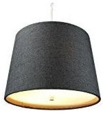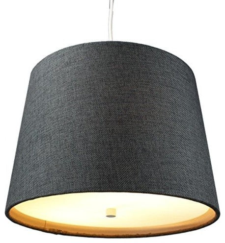 Plug In Swag Pendant - The perfect addition to any dark corner or above a table that the builder didn''t provide electrical wiring. You will love your swag pendant light because it can move anywhere and put the light exactly where you need it. Wondering about size? Simply add the length and width of your space and that will give you the maximum bottom width of your pendant. If your swag is not centered in the room you should likely use smaller measurements to define the "space" you are lighting up. Why Upgrade to Home Concept Signature Pendants? Top Quality Premium Lampshades means your room will glow with a rich warm luster your guests will notice. Plus we include upgrades like a premium inner lining and quality fabric so your new shade will last for years. Heavy brass and steel frames mean you can feel the difference when you lift it.2 LIGHT SWAG CORD - 17'' Round White cord with 3 prong grounded plug and handy on/off rocker switch 35" from plug.COMPONENTS - Includes 13.5" Round Diffuser Translucent Frosted White 2 premium "bishop" ceiling hooks, and all hardware.WATTAGE - 2 x 150w Max bulb (not included) Accomodates Regular base incandescent CFL or LED bulb. (LED recommended) DIMENSIONS - 12" Top x 14" Bottom x 10" Slant HeightQUALITY - Top quality lighting found in better lighting showrooms. Durable quality shade.BURLAP FABRIC - Granite Gray Burlap fabric is a blend of black, gray and brown (if you look close enough you can pick out all 3 distinct colors) From a distance it looks dark (granite) grayETL APPROVED - Built with ETL approved components, for years of safe and reliable serviceDownload Assembly Instruction and Tips