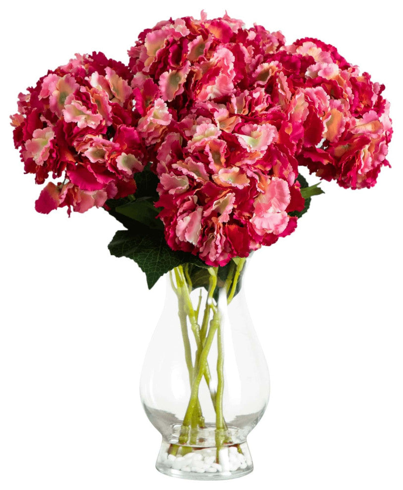 20" Artificial Hydrangea Arrangement, Glass Vase, Pink