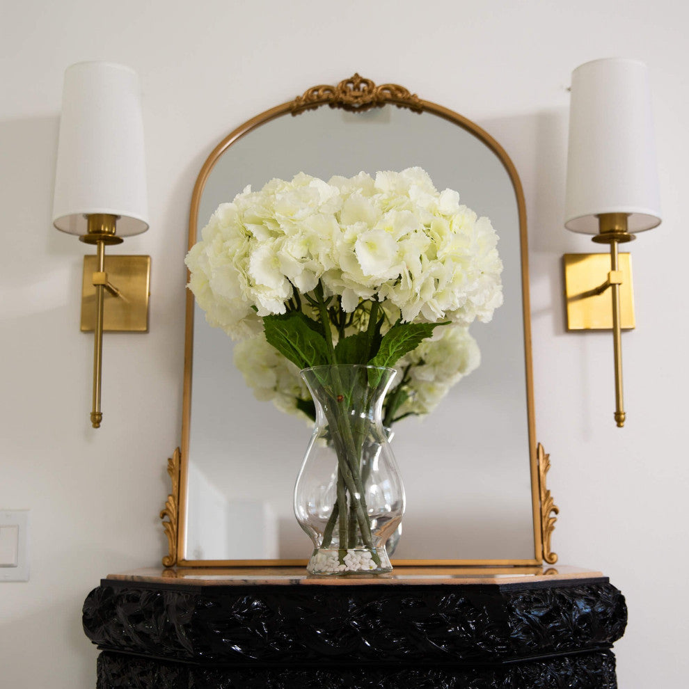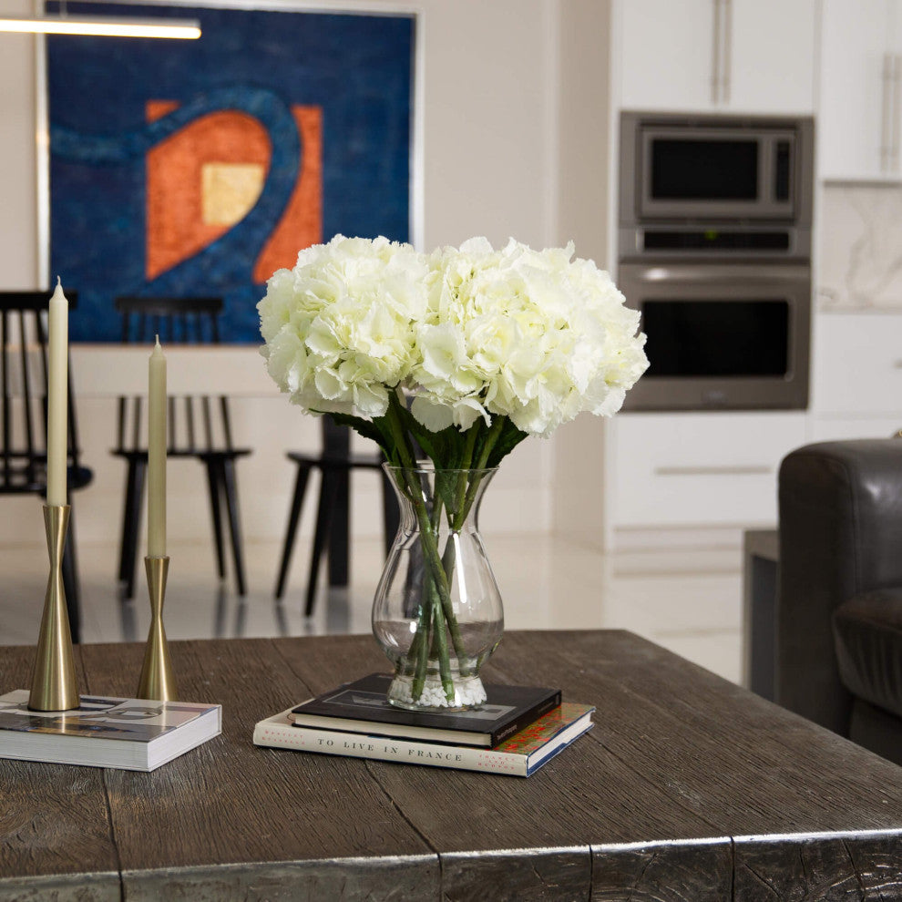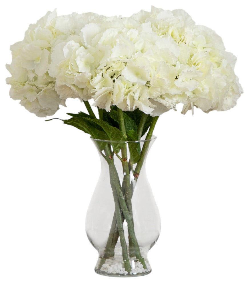 20" Artificial Hydrangea Arrangement, Glass Vase, White