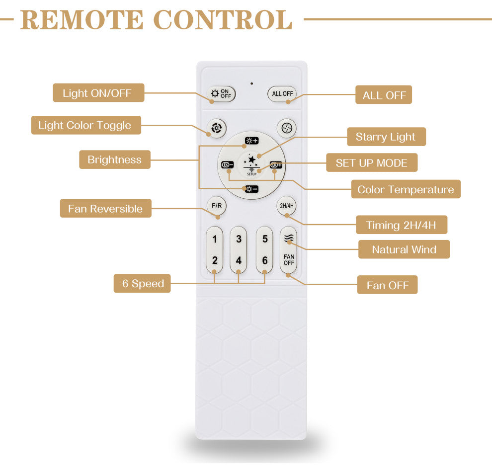 Remote Control: 6 fan speeds and LED chandelier lights can be controlled separately by one remote control and Smart APP, Controlling your ceiling fan has never been easier.