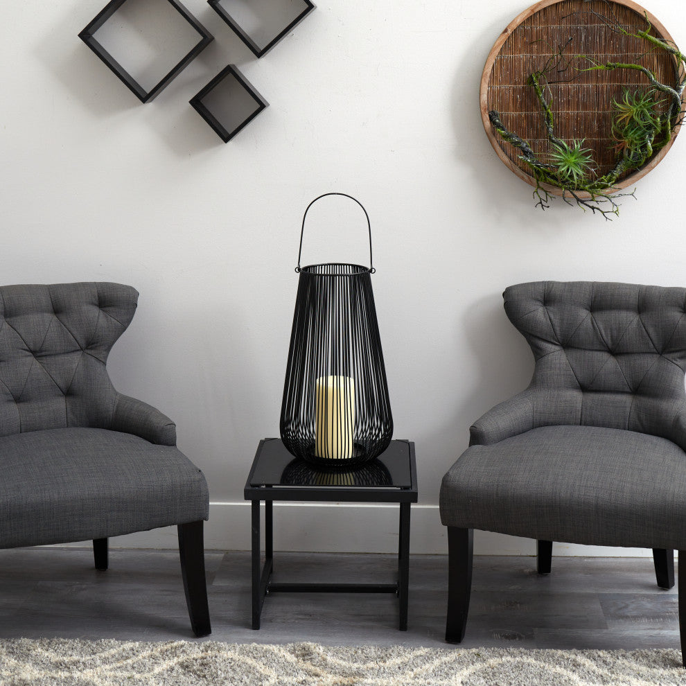 20" Vintage Black Metal Wire Votive Tea Lantern Candle Holder