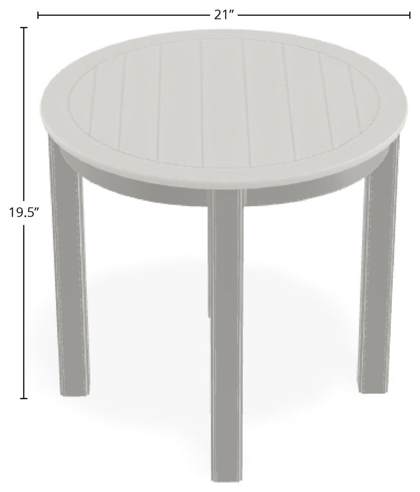 Marine Grade Polymer Top Tables combine modern design with unmatched durability for outdoor living. With options in coffee, chat, dining, accessory, balcony, and bar heights, they offer versatility for any setting. Sleek lines and sharp angles create a clean, contemporary look, while marine-grade polymer surfaces resist cracking, rotting, and water damage. Built to last, these tables are a practical and stylish choice for outdoor spaces.Features:•  Overall product dimensions are 21" W x 21" D x 19.5" H•  Marine-grade polymer resists cracking, rotting, and water damage, inside and out•  Slat top design ensures durability, water drainage, and a sleek look•  High-quality 100% stainless steel hardware•  Low-maintenance and easy to clean•  Available in multiple color variations•  Proudly made in the USA with over a century of craftsmanship since 1903Dimensions:End Table•  Assembled Product: 21 inches wide x 21 inches deep x 19.5 inches high•  Weight Capacity: 350 pounds
