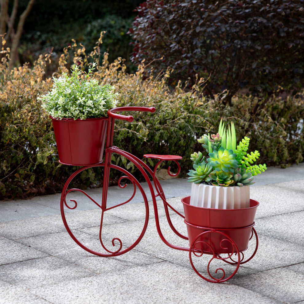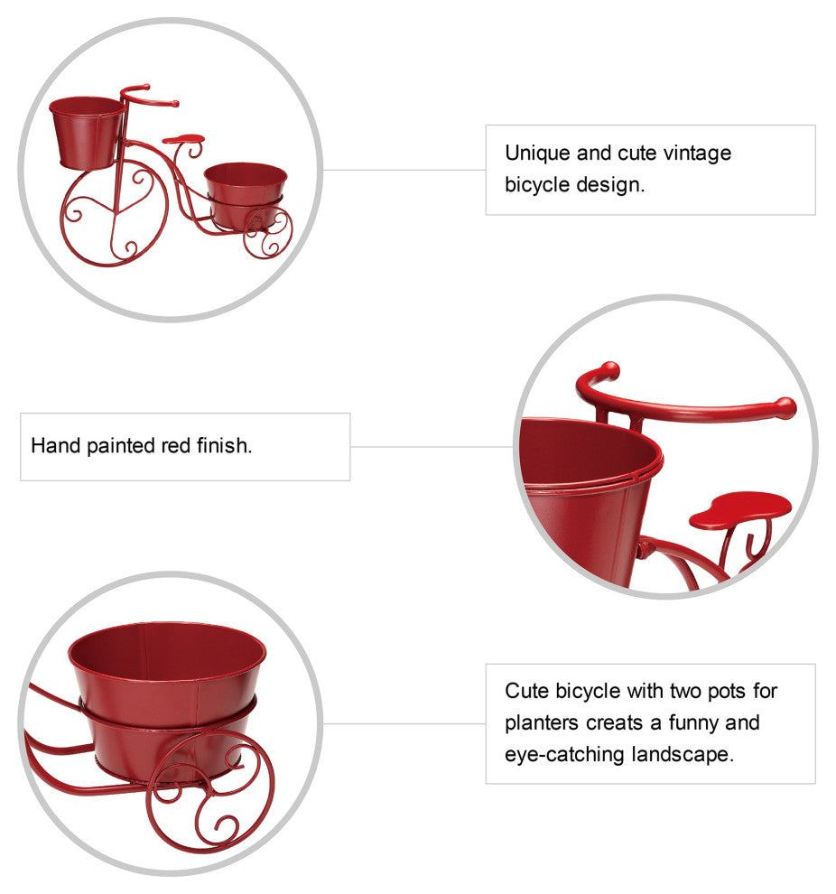 21.5"L Metal Bicycle Plant Stand, Red
