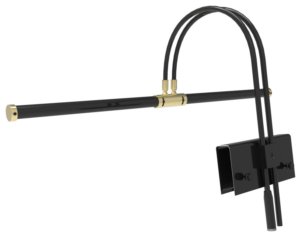 22" LED Grand Piano Lamp, Black and Brass, With Brass Accents
