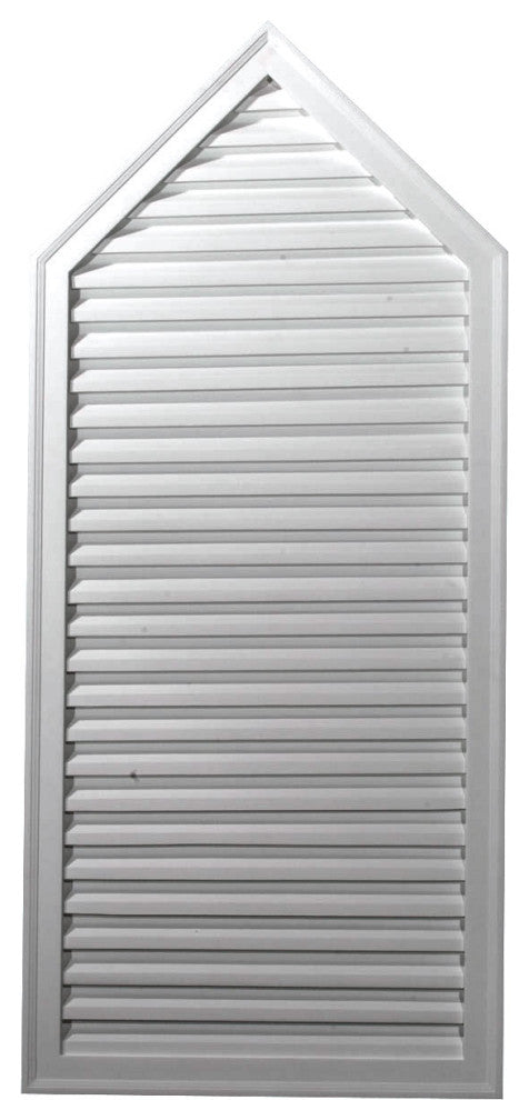24 1/8"W x 54 1/8"H x 1 7/8"P, Peaked Gable Vent - Decorative. Decorative gable vents provide flair to the exterior of your home, allowing you to maintain a consistent appearance without the need for installing unnecessary and costly functional gable vents- Made from high-density polyurethane, Ekenas decorative vents are lightweight and easy to install- They are designed to withstand the elements, resisting rotting, cracking and insect infestations, and they come factory-primed and ready for your choice of paint-Features- Modeled after original historical patterns and designs-- Constructed from solid urethane for maximum durability and detail-- Lightweight for quick and easy installation-- Factory-primed and ready for paint or faux finish-- Can be cut, drilled, glued and screwed-- Designed for use on both interior and exterior applications-- Material - Urethane
